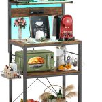 Aheaplus Bakers Rack with Power Outlet, Microwave Stand, 5 Tiers Coffee Bar Station with Led Lights, Kitchen Storage Shelf with 6 S-Shaped Hooks, Kitchen Rack for Spices, Pots and Pans, Rustic Brown