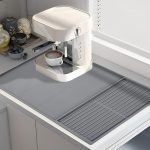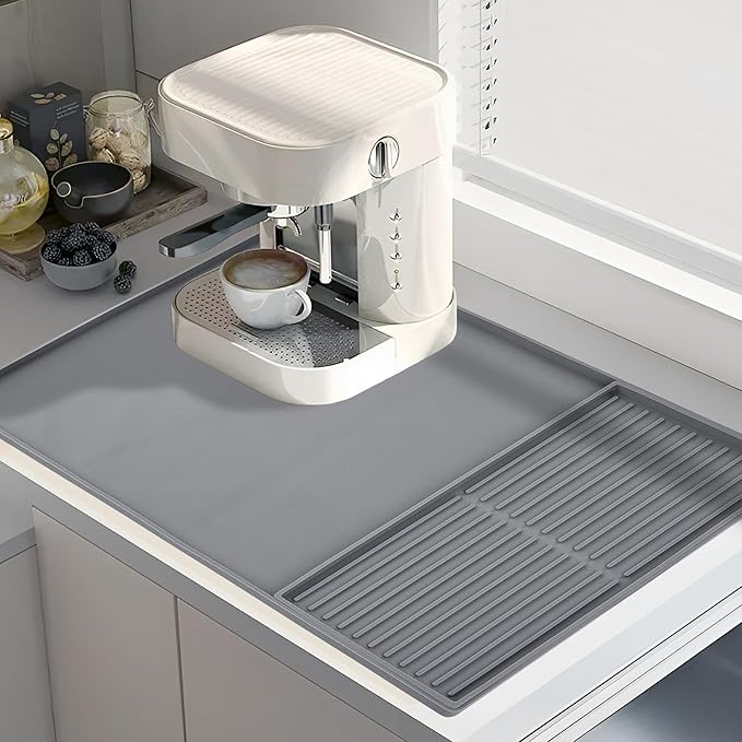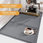- 【Innovative Partition Design】The coffee mat has 2 areas, 2/3 is used to place the main equipment such as the coffee machine, and 1/3 has a drainage function, which is convenient for placing coffee cups or as a drying mat for tableware and plates. This coffee mat can prevent leakage and spillage well. Its advanced design can provide you with a worry-free coffee experience.