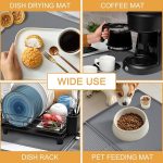 - 【Wide range of uses】This coffee bar mat is flexible in design and can be widely used as a drying mat for kitchen countertops, coffee machine bars, as well as cups, water dispensers, blenders, sinks,etc., and even as a food mat for pets. You can also use it as a decoration to enhance the beauty of your coffee cabinet or desk.