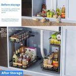 - 【Adjustable Three-Height Design】 “Our under sink storage solution offers Three height levels, adjustable from 14.5 to 16.9 inches, accommodating the majority of cabinet heights, easily handles a variety of item sizes.”