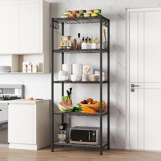 5-Shelf Shelving Unit with Shelf Liners Set of 5, NSF Certified, Adjustable, Steel Organizer Wire Rack, 100lbs Loading Capacity Per Shelf, for Kitchen and Garage (23.6W x 14D x 59H) Black
