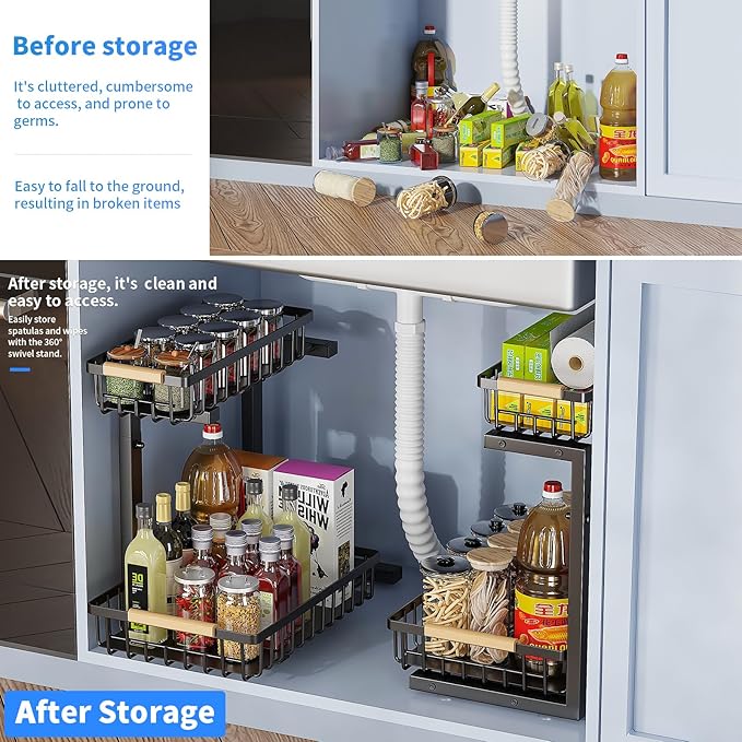 Under Sink Organizer and Storage,Height Adjustable Under Sink Organizer, Single 2 Tier Pull Out Drawer Cabinet Organizer for Kitchen Bathroom Storage
