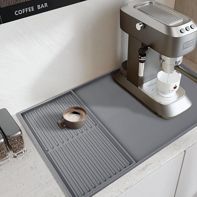 Meiliweser-Coffee Mat Silicone Drying Mat Hide Stains Suitable for Kitchen Countertop Coffee Bar Accessories Coffee Restaurant Decoration Easy to Absorbent and Removable (Gray, L)